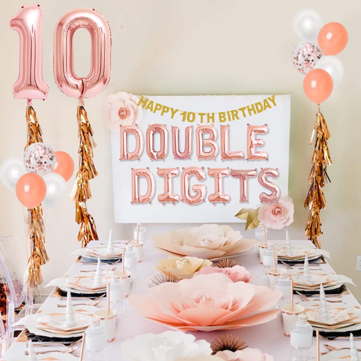 Buy 10th Birthday Decorations Rose Gold For Girls Double Digits Happy 10th Birthday Theme Banner Cake Topper 10 Year Old Birthday Party Supplies Online In Kazakhstan B08ckcbffl